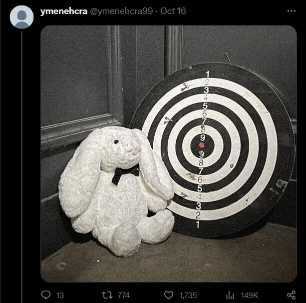 9mynameis1 responde a la foto del conejo de peluche y la diana.